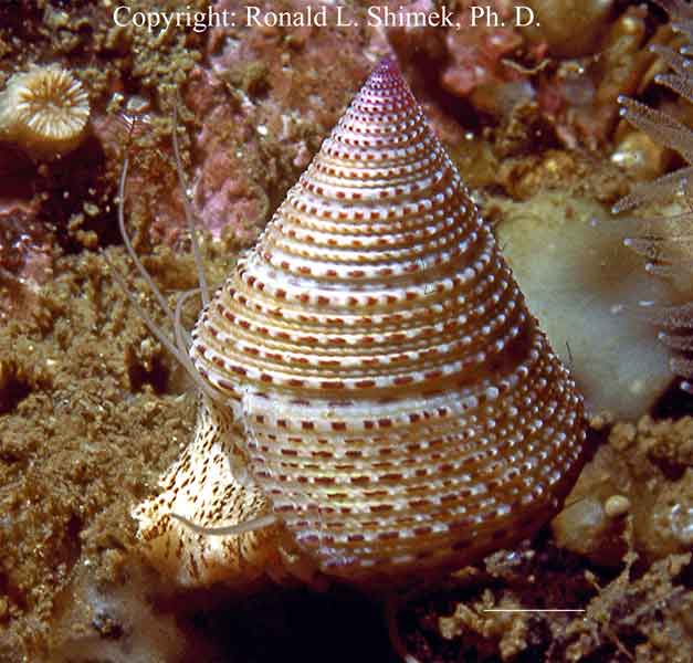 This is a rare species to find. The shell appears smooth with only faint spiral ridges.